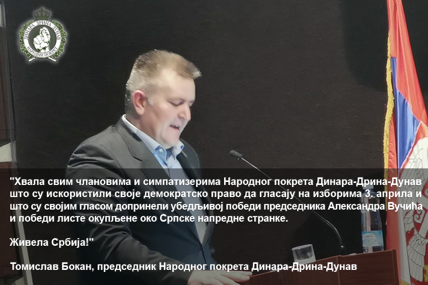 Томислав Бокан се захвалио свим члановима и симпатизерима Народног покрета Динара-Дрина-Дунав Понедељак, 4. Април 2022. Живела Србија!